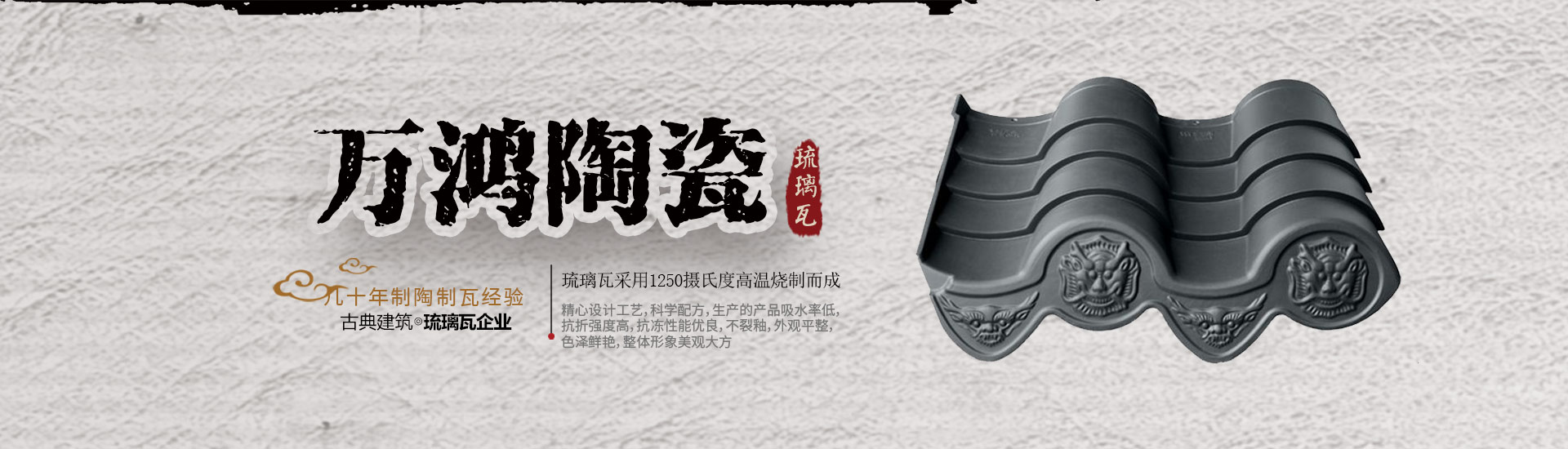 宜興市萬鴻陶瓷有限公司是國內生產古建琉璃瓦企業,也是宜興市琉璃瓦行業龍頭骨干企業。琉璃瓦采用1250攝氏度高溫燒制而成,公司座落經濟發達的宜興市丁山鎮,臨近寧杭高速公路、新長鐵路、錫宜高速和104國道,交通十分便利。 萬鴻陶瓷擁有幾十...